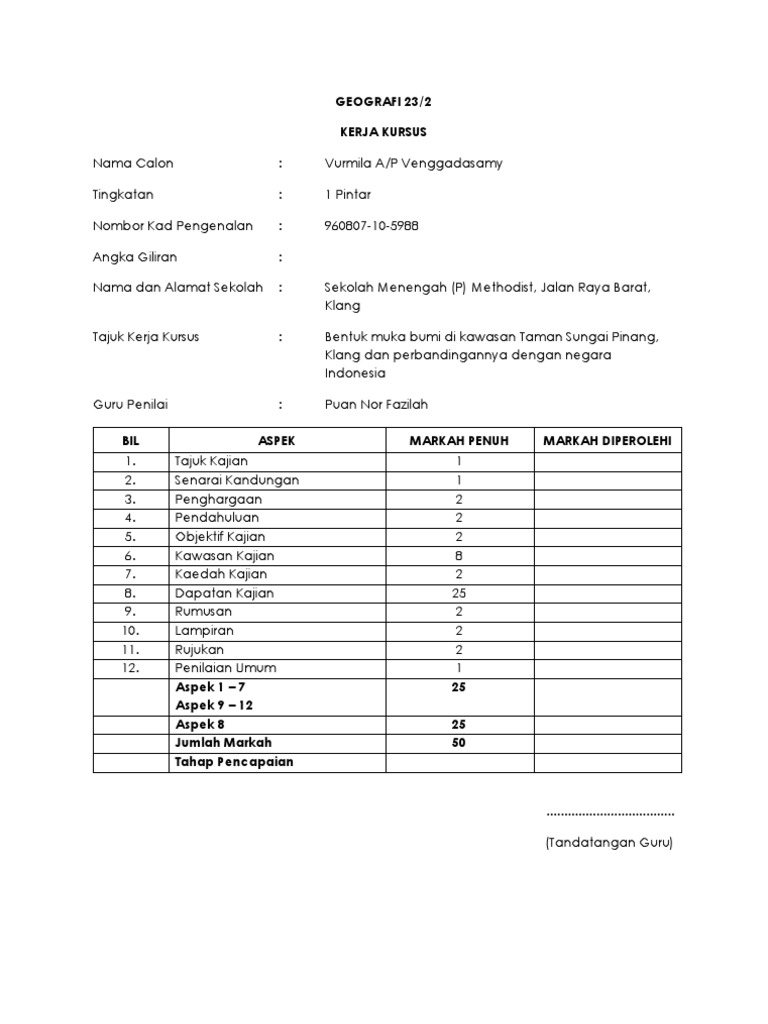 Pelajar tingkatan 3 perlu menyiapkan kerja kursus yang merupakan jenis pentaksiran pelbagai instrumen yang terdapat dalam peperiksaan pt3. Sukar diurai dan dilupus, dihasilkan dari sumber mineral. Pendahuluan saya telah menjalankan kerja kursus geografi. Tajuk kerja lapangan saya ialah objektif kajian: Doc kerja lapangan nur aneesa academia edu.